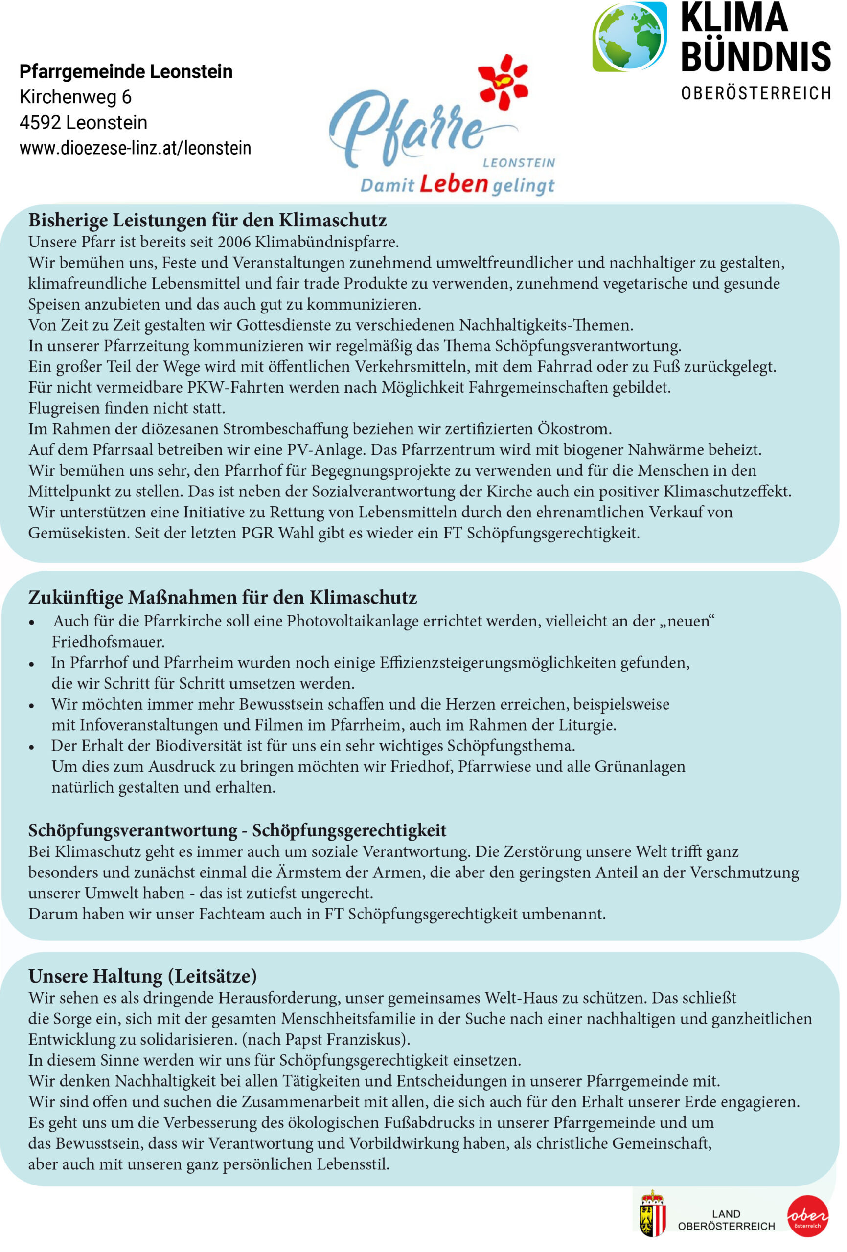 – die Beschäftigung mit dem Projekt Klimabündnispfarrgemeinde